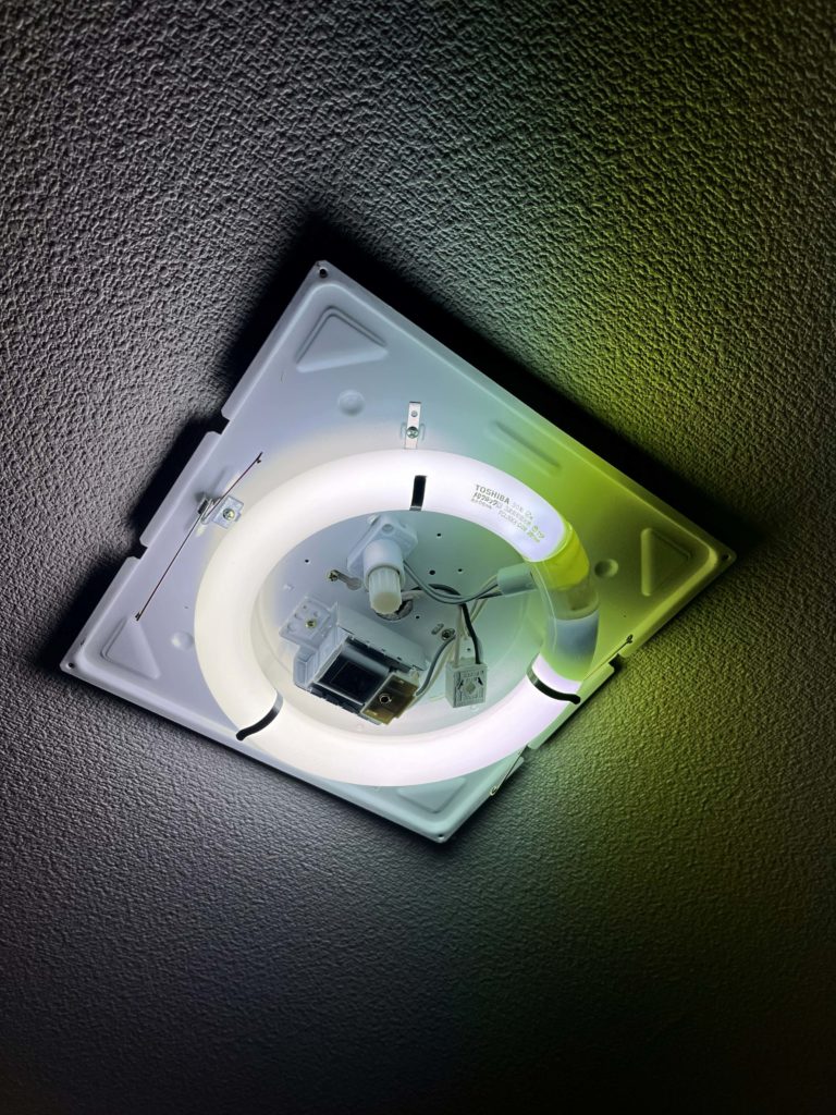 浴室の照明が暗く感じることと、蛍光灯が2027年に生産終了することから、照明器具自体をお取替えさせていただきました。LEDの器具にすることで10年ほどは交換の心配なく使用できると思います。